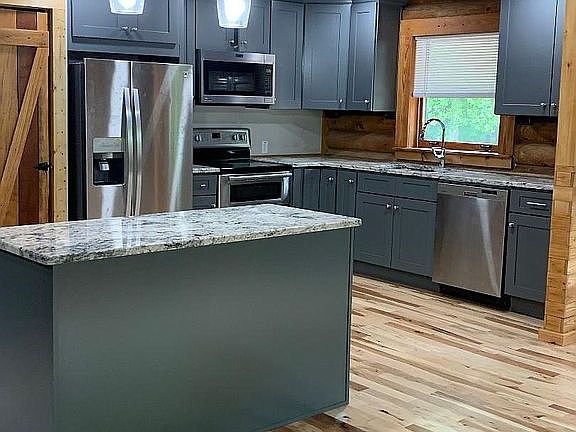 Kitchen with new soft-close cabinets, granite counter tops, all appliance, and walk-in pantry. New solid hardwood floors in the kitchen, dining, living room. Main level also includes 2 bedrooms and 1 full bath. Upstairs has 1 bedroom, large sitting area, full bath and lots of storage. The lower level has a family room, full bath, laundry, office or bedroom, and large workshop. New carpet in bedrooms and family room. New AC/Heat units, new windows, 16x16 deck off the kitchen. Wood burning stove in the family room.