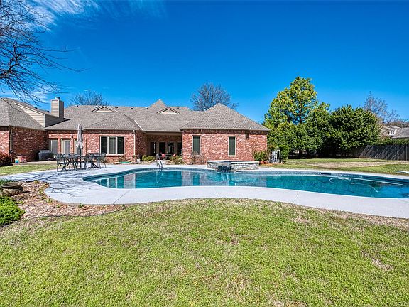 Pristine & Grand one level home w/ Wide open Sub-Zero NEW granite in kitchen/master/utility. Great Room w/views to large GUNITE DIVING pool w/ WATERFALL & SPA. 10'-12' ceilings throughout and wide crown mouldings & plantation shutters, Raised Hardwoods & Vaults. Huge master suite w/separate PATIO access to Pool and Spa! WOW Closets! Most Everything on main level w/ just Bonus Space up back staircase for Vaulted media/excercise/game space! HUGE (newly painted) 3-Car w/ side entry. Bixby North!