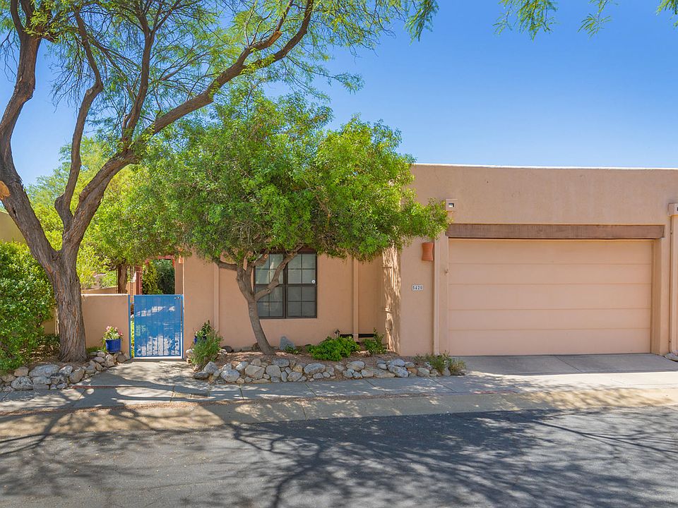 * VIEW VIDEO: https://az.movinghometour.com/22011600_Tucson%20MLS * Exceptional property in charming Old Fort Lowell Historic District, close to everything! One of the largest floorplans (1.927sqft) in La Sonrisa, this detached hm is on 1-1/2 lots. Natural light from 4X4 skylight in huge foyer welcomes you to beautiful living/dining room w/14' wood beamed ceilings, fireplace w/mesquite surround, custom built-in bookcases & French doors to private, shady patio. Eat-in kitchen boasts custom cabinetry, granite countertops, walk-in pantry. Master bedroom w/private bath, generous closets & French doors to private, quiet patio. Second bedroom (split bedroom plan), perfect for guests, also w/adjoining bath. Separate den/office/3rd bedrm with walk-in closet. This is a highly sought-after neighborhood & a lovely property! Bring your buyers now!