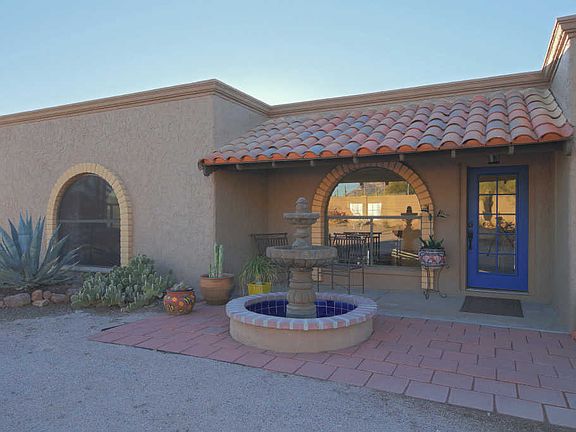 Located on over an acre with surrounding mountain and desert views, this exceptionally charming hacienda has been meticulously maintained. Upon entry, you will be immersed into southwestern comfort including newer saltillo tile, neutral 2-tone paint, and kiva fireplace. Plenty of room to entertain, the kitchen boasts rich staggered maple cabinets, newer appliances, granite, and travertine backsplash. The flexible floorplan provides options whether you need bedroom space, an office or hobby room. The bathrooms have been tastefully upgraded with tiled shower/bath and upgraded cabinets with tile and granite counters. The backyard provides the space to add a pool or your dream stable. Other features include newer roof, newer water heater, Andersen French doors, and (CLICK ''MORE'') crown molding. You can't help but fall in love with this home!