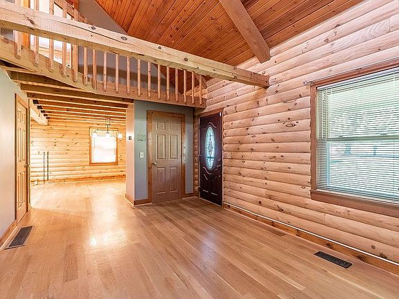 Beautiful log home on nearly 3 acres over looking your own pond. This 3 bedroom, 2 bath home offers plenty of room with an additional home office and upstairs rec space. Living room with fireplace is perfect for cold nights. Plenty of storage with the 2 car detached garage plus garden shed. The covered front porch and patio offer the outdoor living space you crave. Paved driveway. Centerburg Schools with easy access to Columbus and Mt. Vernon.