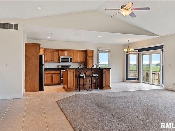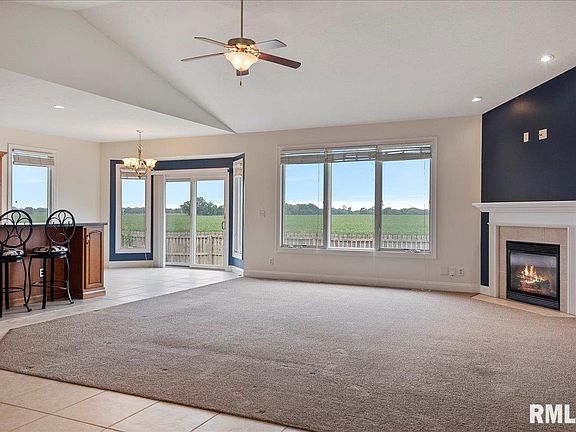 Situated at the end of a quiet cul da sac in popular Deerfield subdivision this lovely 3 bedroom 2 bath ranch offers an open floor plan with high vaulted ceilings, large over size windows provide a much daylight. Spacious room sizes throughout. This home is in excellent condition, large primary suite with sliding glass door to a private patio. Full basement partially finished, stubbed in for a full bath, egress window in the unfinished area provides an excellent opportunity to finish a 4th bedroom and bath making a perfect guest suite. Large 3 car garage. Fresh paint throughout the home and garage. Anderson windows and sliding glass doors. Trane HVAC system, Moen and Kohler kitchen and bath fixtures. Owner is a licensed real estate broker in the State of Illinois.