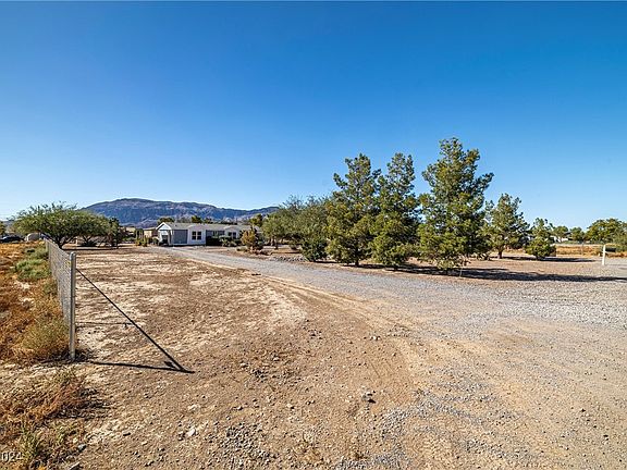 Discover your private sanctuary in a very quiet area of Pahrump with lovely mountain views. Over an acre of beautifully landscaped grounds, fencing all around the property with a block wall for even more privacy in part of the back yard. Home is a welcoming 3 bedroom, 2 bath with open floor plan and vaulted ceilings in the living room. The kitchen features plenty of storage and built-in desk. Primary bath has a large soaking tub, double vanities and separate shower. Tile and laminate floors throughout the property provide for easy maintenance. Enclosed privacy patio creates a perfect area for relaxing and entertaining. RV Hookup in the back yard and plenty of storage for all your toys. Brand new sliding glass door and Anderson windows in 2 rooms! This home is NOT in a FLOOD ZONE!