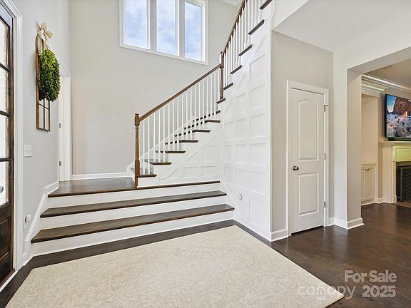 As you enter you are greeted by custom millwork and a two story landing. The floorplan is open and thoughtfully designed; an elegant dining room flows into the great room, where a cozy fireplace is flanked by gorgeous built-ins. The gourmet kitchen features an oversized island, deep drawers for pots and pans, soft close cabinetry with pull-outs and a walk-in pantry. Enjoy the breakfast nook surrounded by windows looking out at the gorgeous wooded lot, have coffee on the covered porch or relax on the patio; the lot next door is common property and great open space. Extra flexibility w/a bedroom and full bathroom downstairs in addition to the powder room. At the top of the stairs is a great area for work or play. The primary retreat is a dream, with a view of the woods, tray ceiling and chandelier, and huge walk-in closet. The primary bath features dual vanities and a spa-like shower. Neighborhood pool, clubhouse, playground, pond w/dock & trails; highly rated Fort Mill schools.