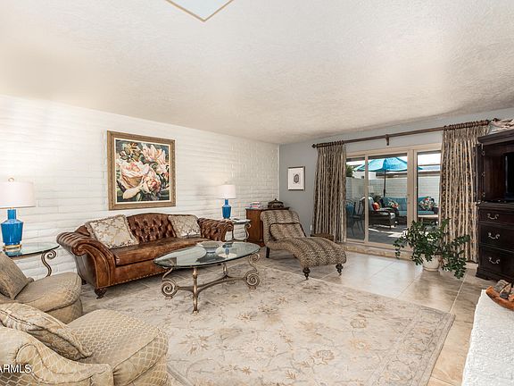 restaurants, Saturday farmer's market, Scottsdale Fashion Square, multiple Spring Training facilities, and Chaparral park with lots of walking paths all close by. This beautiful patio home boasts lots of character with unique atriums and brick walls. The unit has been tastefully remodeled including updated kitchen and bathrooms, new windows and fresh paint throughout, new baseboards, new stucco on the exterior, and new garage door. Community offers 2 heated pools year round, jacuzzi, workout room, and monthly events. The HOA is repairing and repainting all the homes currently. The project should be complete by mid April/early May