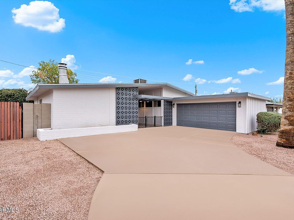 Beautifully remodeled mid-century modern home in the heart of Scottsdale! This bright and inviting home features an open layout, brand-new kitchen with quartz counters and a large waterfall island, stainless steel appliances, and warm wood-style flooring throughout. Enjoy a spacious living area with a cozy corner fireplace and large windows for great natural light. Fresh interior and exterior paint, updated lighting, modern fixtures, and move-in-ready finishes in every room. Low-maintenance backyard with covered patio for easy indoor/outdoor living. Just minutes from Old Town, parks, shopping, dining, and freeway access. A welcoming, fully updated Scottsdale gem!