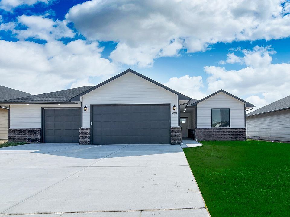 This stunning zero-step slab home situated on an incredible lakefront lot is newly finished by RJ Castle Custom Homes and is ready for you to make it yours! Featuring 4 bedrooms, 2 bathrooms, and an oversized 3 car garage. With multiple living areas...both inside and out, this home is the perfect place for gathering, entertaining and just plain living! Large windows across the back of the home provide an abundance of natural light. The spacious living room has walk-out doors to the covered patio! The Owner's suite features 2 walk in closets, a private bath, and a roomy shower. The irrigation well and sprinkler system have been installed, sod will be installed soon and they are all included in the price! Contact the listing agent for more details. Some information may be estimated, please verify schools with USD 262.