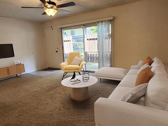 Open Sat 12/2 2-4pm. This 1-story end unit is like a single-family home, with no one living above or below you. There are no steps to get to your own private entrance to the house. Located on a cul-de-sac on the 1st main street, you get more privacy but quick in and out. Parking, laundry, clubhouse & swimming pool are just a few steps away. An open-concept layout welcomes you home, seamlessly connecting living, dining & kitchen areas. The centrally located gas fireplace provides a touch of coziness on cooler days. The kitchen counter provides a large working area & the ref & stove is just a turn away. There are two spacious bedrooms with wall to wall closets. In the bathroom, the enclosed shower provides a seat for your relaxed bathing. Your front yard opens to the greenbelt, extending your outside space. Enjoy life in this serene home tucked away in one of the most beautiful and private neigbhorhoods of Concord! The meticulously landscaped grounds, tall trees & lush greenery provide an oasis-like environment that is a true escape from the urban hustle. A shopping center is within walking distance with coffee shops, restaurants & grocery stores to serve you. No long-term rental restrictions allow you to rent it out if needed. Extra locked storage closet by parking.