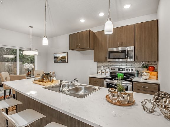 Zero down loan avail. Exceptional quality w/ open plan in small cul-de-sac community. Walking distance of school, Springwater Corridor, and Powell Butte Park. Garage + parking space. Laminate floors on main. Kitchen/bath quartz counters. Stainless appliances. Tile bath floors. Marvelous master BR w/ 2 walk-in closets + spacious tile shower. Large fenced side yard. Price is discounted for those who qualify (google:systems development exemption Portland). Up to $2,200 preferred lender cr