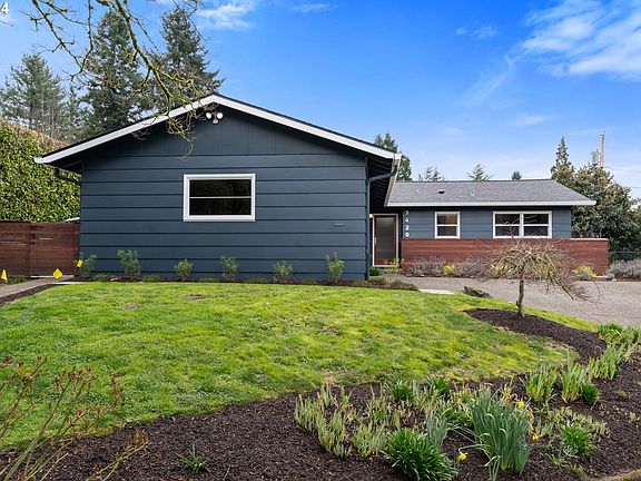 Created in 1959, along with the Eveready alkaline battery, this home was built to last! Stunning Bridlemile Midcentury with true single level living on a quiet cul-de-sac. Vintage and modern blending styled for today's living. Period hardwoods, vaulted beam ceiling, mahogany closets, 2-sided fireplace, updated systems and finishes. Open updated kitchen with Wolf range and Miele dishwater, granite counters, eating bar opens to dining room with fireplace. Both the large living, with 2nd fireplace and wet bar and family room spill out to a huge entertainer's patio. Three generous bedrooms + 2 & 1/2 baths including huge primary suite, with wall of closets, walk-in shower and private yard access. Tons of closet space throughout plus storage closets in the side courtyard. Large private lot adorned with mature landscaping. Attached 2 car garage with EV charger, efficient gas furnace, central A/C, on demand hot water, newer roof and interior & exterior paint, wired for high speed network...located right down the street from neighborhood Albert Kelly Park & near Hillsdale's shops, library, restaurants, cafes, food carts. [Home Energy Score = 1. HES Report at https://rpt.greenbuildingregistry.com/hes/OR10225175]