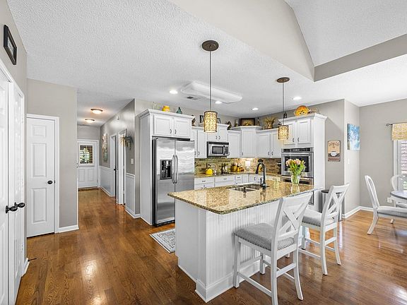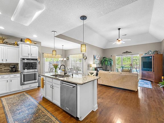 This home sits on almost 3/4 acre and backs up to wooded property for privacy. A 4-bedroom home with a game room (or 5th bedroom) and 3 full baths is the perfect blend of comfort and style. The primary and guest bedrooms are conveniently located on the main floor. You’ll love the nail-down hardwood floors, plantation shutters, vaulted family room, and cozy hearth room—ideal for entertaining. The renovated kitchen features granite counters, updated cabinets, new backsplash, double oven, dishwasher, and a large island. The luxurious primary bath includes a walk-through shower, standalone tub, double vanities, and a huge walk-in closet. New windows, a 5-year-old roof, and a 3-car garage offer peace of mind. Step outside to your private backyard oasis with a sparkling saltwater pool, iron fence, and large covered patio with privacy and serene setting back up to the woods. Offering $4K carpet and $1,500 paint allowance so you can make it your own!