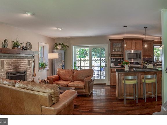 Nestled in a private, park-like setting, this home features open living areas designed for today’s lifestyle, with engineered wood floors throughout and heated floors on the main level for year-round comfort. Warmth and character flow through the home with two woodburning fireplaces—one in the family room and another in the primary suite. The heart of the home is the open-concept kitchen and gathering space with distressed pine cabinetry, soapstone counters, a Shaws farmhouse sink, and high-end appliances—perfect for cooking, entertaining, or simply enjoying daily life. The main level features a spacious dining room and living room—all open and versatile spaces that can be used interchangeably to fit your lifestyle or mood! Upstairs, the primary suite is a private retreat with a fireplace, walk-in closet, and spa-like bath featuring heated travertine floors, a jetted tub, and a tiled shower. Three additional bedrooms share another full bath. Sensational outdoor living with a stone terrace, retractable awning, koi pond, raised garden beds, and a shed with electric—all within the privacy of a fenced yard. Some of the more recent updates include a whole house generator, newer roof (2019), tankless water heater (2025), water filtration system with reverse osmosis (RO), and well pump (2025). Just 8 minutes into Doylestown to enjoy vibrant restaurants, boutiques, cultural attractions, and more! Located in the award-winning Central Bucks School District, this is a rare opportunity to live in a warm, open home surrounded by natural beauty!