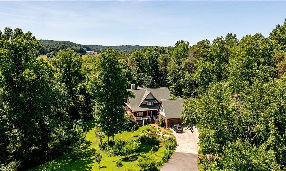 Welcome to Yadkin Valley Wine Country!Rare find with picturesque views~Opportunity to own a getaway or a farm~One of a Kind home magically situated on 25+ acres~Stream, gently rolled pastures for lifestock,Trails, Outbuildings,Chicken Coop& more~Fabulous Wraparound Porch/Trex in 2021~Remodeled Kitchen boasts sparkling porcelain tile flooring,Center Island with Waterfall feature~Comfortable Den is accented by Stone fireplace~Primary Bedroom features Cathedral Ceiling, heated tile floors, dual vanity,Jetted tub, separate shower in private bath~The Apartment over Garage consists of a bedroom & full bath - not included in SF~The unfinished Basement is wonderful for storage.