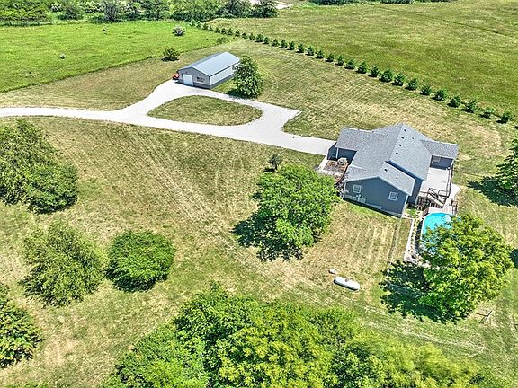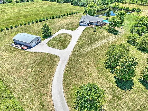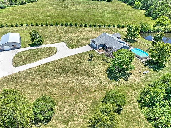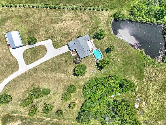 6 ACRES with a STOCKED POND, a POLE BUILIDING and an ABOVE GROUND POOL go with this Mount Zion ranch home! Imagine being near everything but in a country setting down a long PRIVATE DRIVE that opens to a gorgeous expanse where you can see Heron and baby deer! The homeowners have updated this home from the inside out. Outside there's a newer exterior and inside there's all newer flooring, an updated open-concept kitchen with white cabinetry, STAINLESS APPLIANCES and QUARTZ countertops! The main floor also offers a laundry room and 3 bedrooms, including a master bedroom with a QUATRZ countered bath and a walk-in closet! The WALK-OUT LOWER LEVEL is WIDE OPEN. IT offers a spectacular remodeled living area with all newer surfaces with handsome built-in cabinetry and built-in speakers for surround sound! The upper-level walks out to a large freshly painted deck and the lower-level walks out to a custom patio and has a fenced area for the dogs! It al overlooks the acreage and POND!