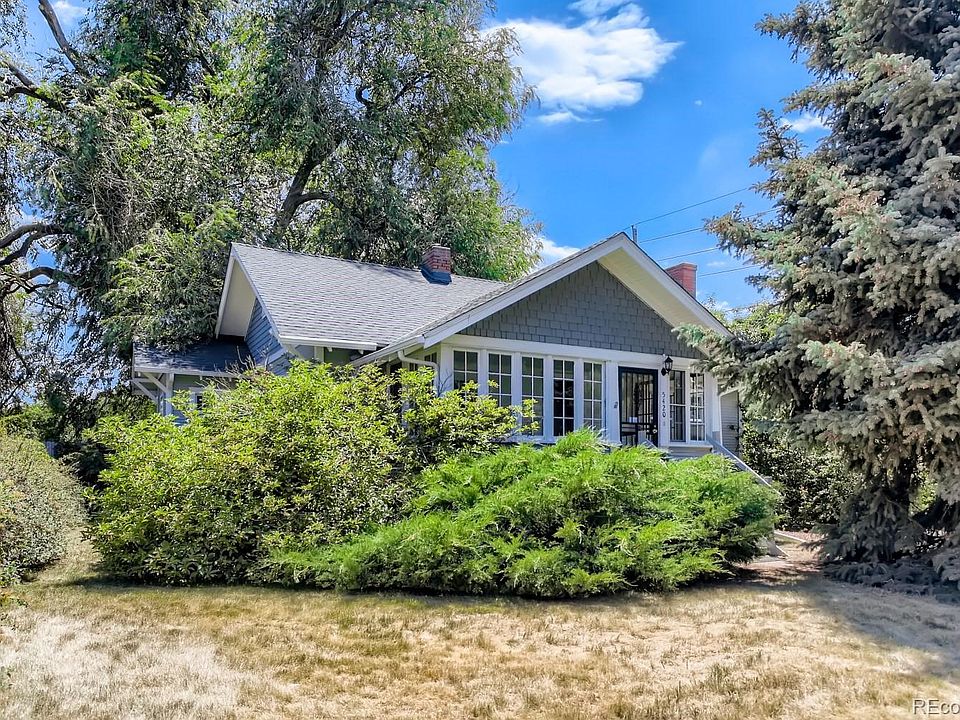 Located across the street from Colorado's smallest town- Mt View and an easy walk to the Tennyson St and Ridge @ 38th food/entertainment areas, this nearly century old Wheat Ridge bungalow has all new paint and updated flooring-carpet, laminate and refinished oak floors yet maintains the intricacies and charm we love in a vintage home. Starting w/ the beautiful wood antique front entry door thru the enclosed front porch/sunroom, this 'right sized' home has plenty of space for living but not wasted bedrooms. It's preserved woodwork is to be seen and admired. The living room is ample featuring a gas fireplace and an old tyme 'cubby' for its original days newest hi tech device- the telephone. Quite a conversation starter! The French doors lead to the nicely lit dining room and on to the kitchen. Show off your one of a kind kitchen w/ newly painted cabinets, countertop, and tile backsplash. Yesteryear features include drawer pullout bins, a hideaway drop down utility table/ironing board plus who else can say their home has a 'butler's pantry'. Now you can. The primary bedroom on the main floor has a deep double doored closet you need to see to appreciate. All the beautiful wood windows are original w/ added storm windows for comfort and efficiency. The basement offers laundry facilities w/ an indestructible concrete & iron utility sink. There is much potential here to make it your way. Outside notice deep lot & mature landscaping. A stout trunked shade tree shades much of the back yard (the front yard has one of the biggest holiday pine trees). Your green thumb will appreciate the perennials, roses, concord and chablis grapes, vegetable garden space and front and back sprinklers. Revive one of the outbuildings-back to a functioning chicken coop for the freshest of eggs. Present zoning allows adding an Accessory Dwelling Unit (ADU) and the lot size/config gives you options. Don't miss the transferable Lifetime Guaranteed Leaf Filter gutters on all buildings.