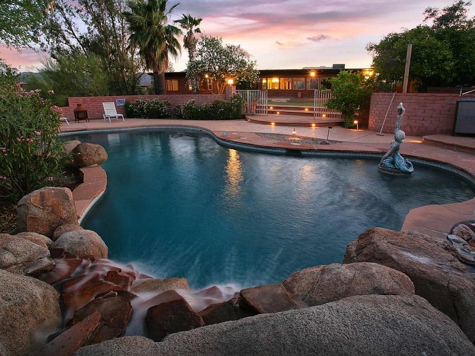 Panoramic views of City Lights, Catalinas, Tortolitas and Sombrero Peak from this classic adobe ranch and delightful guesthouse filled w/rustic charm! Main house offers 3 Brs and has wood plank beamed ceilings, exposed adobe details, beautiful brick flrs & massive stone FP in family rm. Open kitchen features granite counters, stainless appl, huge island and built-in desk. Large living/game room with fireplace is big enough for a pool table. Wonderful 2 bedroom guest house offers living room with FP and spacious kitchen. Beautiful backyard features pebble-tec pool with waterfall and fountain, covered patios, faux grass, several sitting areas and those spectacular views. New dual pane windows, HUGE 4-C Gar w/ loads of storage and space horses, RV and toys! Priced below appraised value!