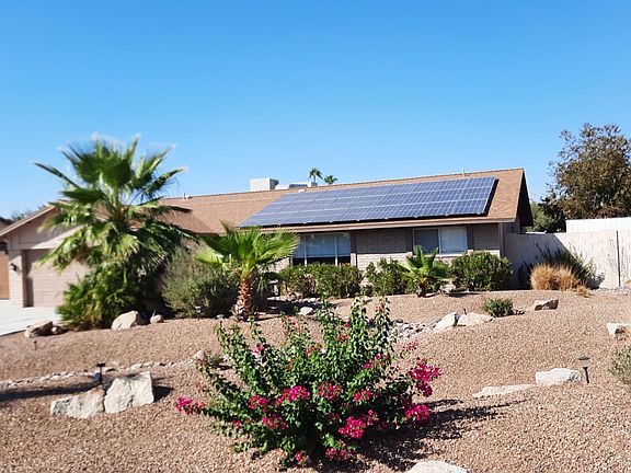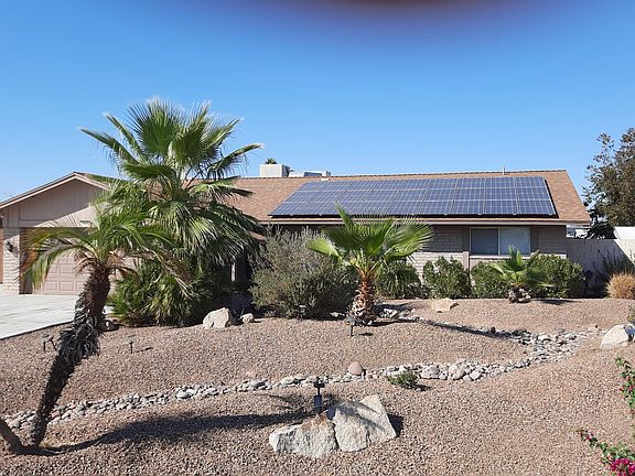 This is a beautiful Hallcraft Arcadia model sited on a HUGE lot. Primary bedroom is large with en-suite bathroom. kitchen has new counter tops and has stainless steel appliances. Home has marble flooring and luxury vinyl flooring. Very spacious laundry room with plenty of storage. This property has a PAID for SunRun 12000 kilowatt solar system. Sparkling pool and covered patio. Tons of parking and an RV gate and many more amenities that you will love like a 12X10 shed, level 2 electric car outlet in garage, both A/C and evaporator cooler, motor home 50 amp plug on side of house, R40 insulation in roof and more.