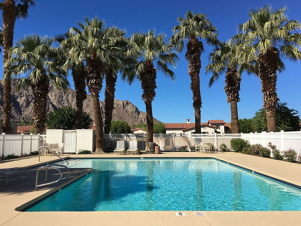 Unfurnished Annual Rental Freshly painted and carpets professionally cleaned. Spacious, light and bright 2 bedroom + 2 bathroom + Den! Enjoy an eat-in kitchen, den opens to kitchen, high-top counter with seating for four- opens to another living space with room for formal dining. Vaulted ceilings and slider to back patio. Interior laundry and plantation shutters throughout. Beautiful golf course views of the 12th fairway from your rear covered patio. Front enclosed patio offers private BBQ. Sparkling community Pool and Jacuzzi is located just a few doors down. Rent is inclusive of HOA fees, Trash and Basic Cable. Submit for small pet.