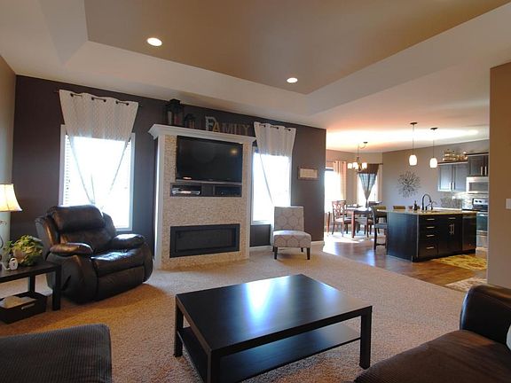 Top of the line! NEW 3 bed/2 bath rambler! Granite throughout, cherry cabinets, stainless appliances, tile backsplash, laminate flooring, heated tile in master, glass shower, gas fireplace, tv built-in, trayed ceilings, den/office, main floor laundry & more! Choose colors/finishes! PHOTOS OF MODEL.