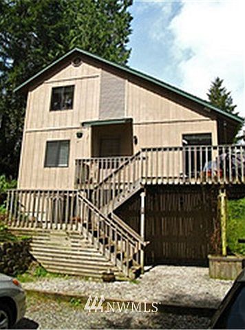 Spectacular NW Chalet on nearly an acre in private Manchester Community. This gem sits in a park like setting w/ mature trees and a natural spring fed pond. Peace and serenity included! This home stays nice and cool in the summer with the shady trees and toasty in the winter with the wood burning stove. Ceiling fans throughout, vaulted ceilings, 3bd+Office, 2.5ba, a spacious living room, family and detached shop. Bank has Pre-Approved the $160,000 list price!