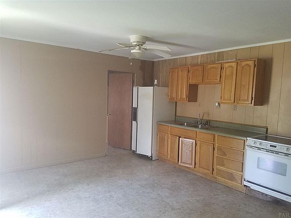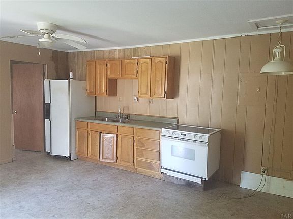 Property has a three separate living quarters. The front apartment is a one bedroom one bath, complete with kitchen and living area. The back apartment is off grade/mobile home, it is move in ready and has one bedroom, two bathrooms, as well as full kitchen and living area. The garage area apartment is one bedroom, one bathroom, it is in need of the most repair due to leak in bedroom ceiling. "As IS" One Meter for Power and Water