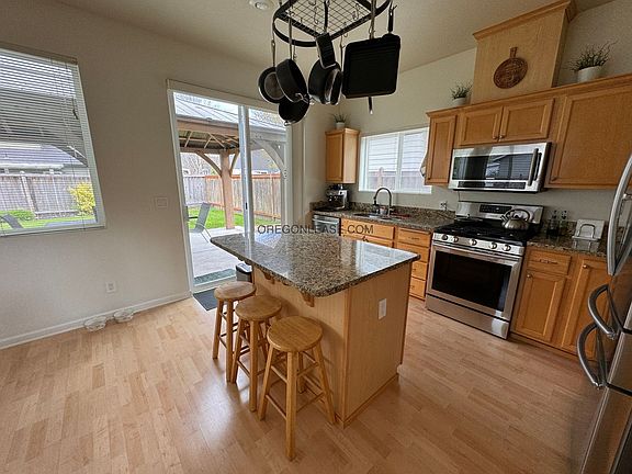 Applications are now being accepted for this spacious and elegant 1,600 square foot home, perfectly suited for families or professionals. The residence features a large living area with high ceilings and expansive windows that flood the space with natural light. Fully equipped kitchen with modern appliances, ample cabinet space, and pristine countertops. All three bedrooms offer substantial closet storage, with the master suite boasting a private bath and walk in closet. The home's location provides easy access to major highways, making any commute a breeze. Additional Amenities: Attached two-car garage with laundry hookups Gas fireplace High-efficiency heating and cooling systems Covered patio in a beautifully landscaped backyardideal for all-weather entertaining. Landscaping service included to maintain the pristine appearance of your outdoor spaces Other Details: Pets: No pets allowed Smoking Policy: This is a no smoking or vaping property Location Highlights: Close proximity to shopping, dining, and entertainment options. Quick access to highways facilitates fast travel to downtown Eugene and other areas Renters insurance is required Offered by Oregon Tenant and Property Management LLC For more information, or apply for this property please go to our website: Oregonlease.com If you need additional time for application you may request so through our web page. Once the home has been rented this listing will be removed.