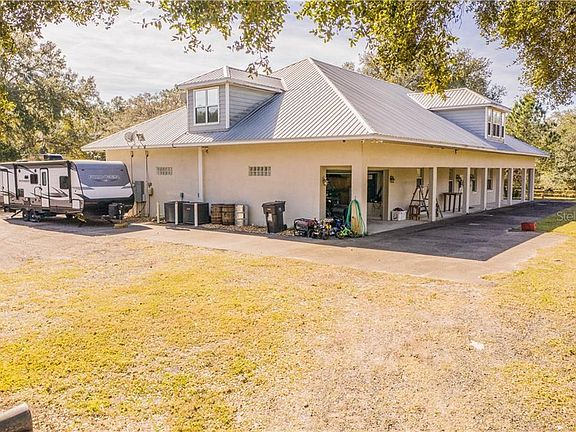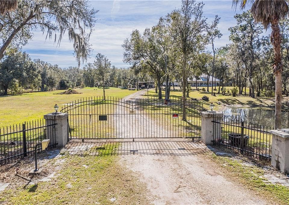 WELCOME HOME!!! This onve of kind PRIVATE CUSTOM & Concrete steel 2007 built home is situated on 12.74 acres of what seeems like HEAVEN on EARTH!!! Your very own private country escape that offers both privacy and SIMPLICITY but still close to I-4 and all major iHIGHWAYS in any direction. TWO HOME property offers a uniquely designed 5900+sf home with 4 bedrooms, 3 bathrooms (2 of the 4 bedrooms with ensuite bathrooms), working shop/detached garage w/office, oversized pole barn w/water and electric, corral and SEPARATE 1700+ sf manufactured home...privately situated behind a private secure remote iron gate. Custom home is engineered with CONCRETE WALLS w/liquid insulation resulting in lower utility costs and designed to WITHSTAND HURRICANE force winds w/STEEL BEAMS added for further stability. Zoned for AGRICULTURE, this fenced ranch offers a bass-filled POND, running creek, oversized septic, private well with treatment system, abundance of water sources for irrigation, state of the art SECURITY SYSTEM and easy access to all state of the art home wiring (including surround sound, cable, lighting, plumbing). Enjoy 4 bedrooms in the MAIN RESIDENCE, w/chef's kitchen, granite countertops & huge island, pull through AIR CONDITIONED 4 CAR GARAGE, wrap around porch & amazing views of your livestock, country views from your higher elevation AND CUSTOM STORM SECURE DESIGN! HUGE OWNER'S SUITE has double doors that lead to the sounds of nature for your morning cup of coffee, ensuite bathroom, plenty of room for sitting area and 2 walk in closets! HUGE KITCHEN with kitchen island, entertainment bar, kitchen window to watch your horses and enjoy the view, full pantry, and eat in area for casual dining. Second floor offers endless opportunities for full apartment w/ private entrance, or a large second owner's suite with private bath and kitchen ready space. Separate manufactured home located on parcel across from main residence. NEW WATER SOFTENER (2019), NEW UPSTAIRS A/C (2019), NEW DISHWASHER (2020). CALL NOW for your PRIVATE SHOWING BEFORE ITS TOO LATE!!