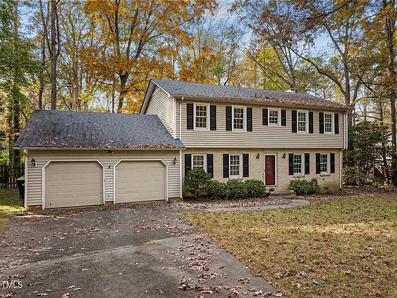 You'll feel tranquility in this country setting but be within 6 miles of downtown Durham, 4 miles to Duke University, 16 miles to RDU. No HOA! Major work and updates have been done within the last 10 years including a new roof, retaining wall, chimney repair, sealed crawlspace, replaced piping in crawl, new water heater & paint. Windows are double pane vinyl tilt-in. Hardwood floors throughout the majority of the home except tile in bathrooms & vinyl in kitchen, mudroom & laundry. Designed with function in mind, this home has a mudroom which connects the 2-car garage to the house, dedicated laundry room, kitchen & out the back to the 12 x 22 covered patio (previously screened). The backyard is completely fenced & features a 27 x 19 storage/shed divided into 2 large spaces. The kitchen has stainless steel appliances, granite countertops and connects directly to the large dining room & the family room with a gas fireplace and built in bookshelves. A separate living room and 1/2 bath complete the first floor. On the second floor you will find all 4 bedrooms & 2 bathrooms. The primary suite boasts double closets & dedicated full bath with walk in shower. Take a look at this house and envision how your personal touches will make this into your perfect home!