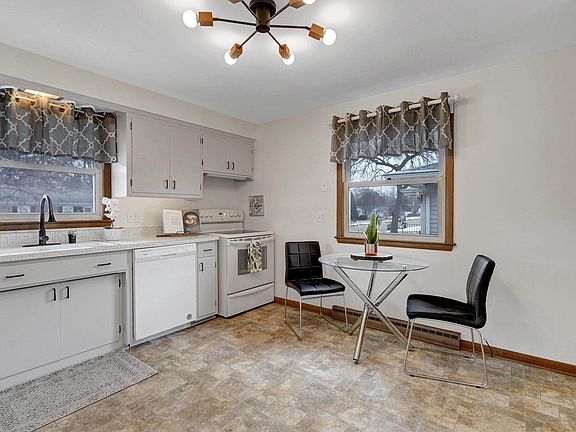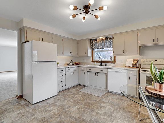 Charming 3 BD, ranch with 2.5 car garage and wide driveway w/parking pad is conveniently located. Main level has 3 BD with hardwood floors, a large LR with neutral carpet, lots of natural light and patio doors leading to deck, 1 full BA, a 1/2 bath (off BD) and a cheerful eat-in kitchen. Lower level has a large rec room with retro bar, fridge and additional large half bath. A corner lot affords you lots of green space and a wonderful private deck to enjoy 3 seasons. Part of yard is fully fenced to keep kids and pets safe. This well cared for home has been freshly painted throughout and offers a new refrigerator, dishwasher and many updated light fixtures and faucets. With a one-year home warranty included for your peace of mind, all you need to do is move right in! See list of updates!