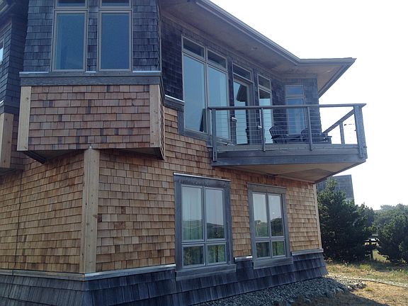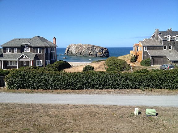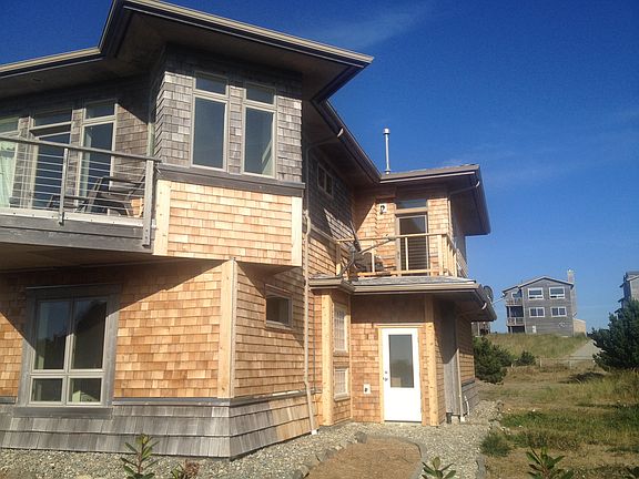 Ultimate Ocean view Bandon-by-the-Sea Beach House located just steps to beach access! Two story custom built Cape Cod style cedar shake home with high quality European inspired Interior. Kitchen has large pantry. Updated in 2014 with a master bedroom, ceiling fan, bath and walk in closet. New concrete driveway poured July, 2015. This home is located across the street from ocean front properties and has large, unobstructed ocean and Haystack Rock views. It has 3 bedrooms or 2 bedrooms and an office, 2.5 baths, concrete floors with radiant heat throughout, and hard wood flooring in the Master Bedroom. Master bathroom has dual sinks, a skylight, tiled and glass door shower, granite counter top, walk-in closet with a skylight, and private deck that offers Western and Southerly ocean views. Large storage closet. Separate laundry room with built in cabinets. Two viewing decks on south and west sides, large picture windows, large soaking tub, attached over-sized single-car garage with attached enclosed mud room. Large .37 acre fenced lot. Great ocean views from almost all rooms. Plenty of space to park an RV. Very desirable Sunset City location off Beach Loop Drive, in the county, and just two blocks south of the Bandon city limits.