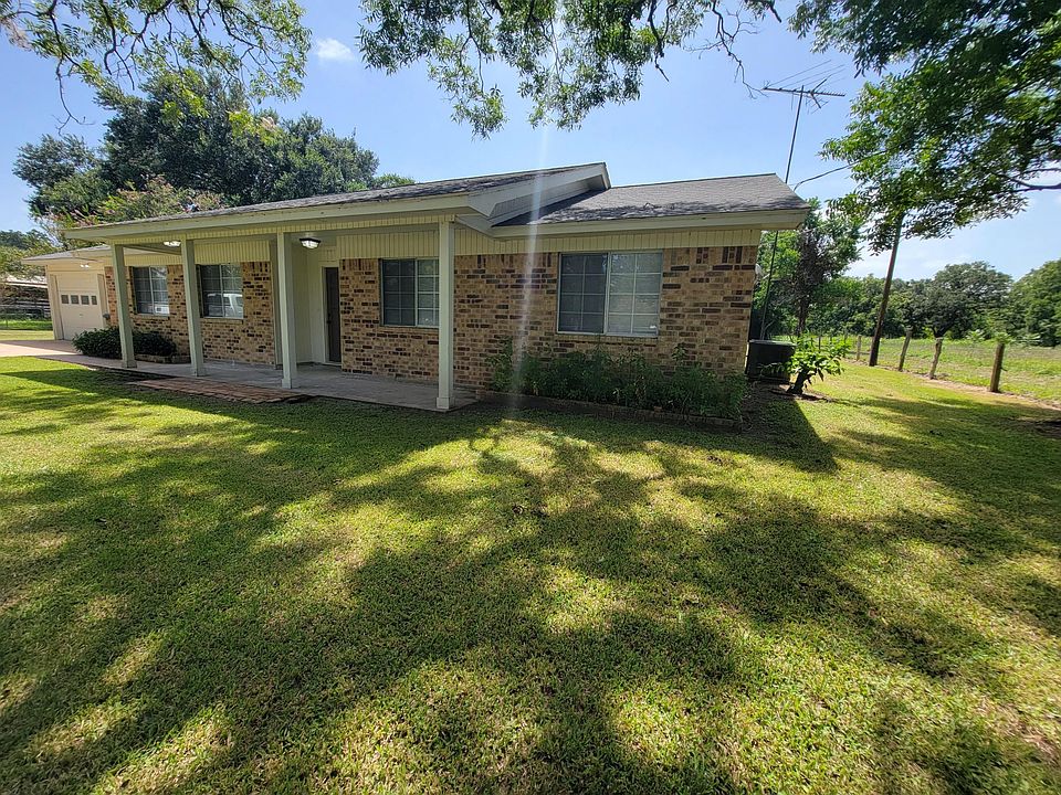 A beautiful remodeled home that sits on 1 acre of country living. 3 bed rooms 2 bath with attached 2 car garage. Tile flooring with carpet in bedrooms. Microwave, stove, and dishwasher. Large backyard, huge living area, nice size utility room with upper cabinets, large master bedroom with his and her closets. Master bath with tile shower, small extra room off of the utility room that would be great for an office or extra storage. Two beautiful magnolia trees flourishing in the front yard. Small storage shed in back. Includes water well and paid trash service. Must have your own refrigerator, washer, and dryer. You pay your own electric. No inside Pets. Located in Boling ISD. Accepting applications, must pass pre-approval before a showing. Guest house located on the property is not available with this rental. It is rented separately and has its own privacy fence and yard, it is occupied. 1 year lease. Trash and water included. Tenant pays Electric