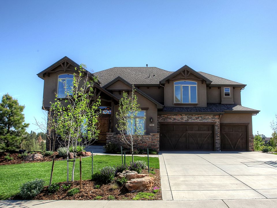 Incredible custom 2-story, 5 bed/5 bath home on one of the most sought-after streets in the Timbers. The home sits at the top of the hill on a meticulously landscaped homesite that backs to open space with spacious forest and mountain views. Upscale features include solid 8' alder doors, custom millwork throughout, recently replaced carpet and burnished wide-plank hardwood flooring, multiple fireplaces to cuddle up in front of on those cold Colorado nights, knotty alder cabinets, wrought iron railings, custom light fixtures, maintenance-free trek deck & so much more. The chef's kitchen delights with knotty-alder cabinets, Bosch and GE profile appliance package including built-in refrigerator and freezer, 5-burner gas stovetop, double ovens, microwave, and wine cooler. The recently finished custom walk-out basement with surround sound, gas fireplace, kitchenette, custom built-ins and woodwork, and spacious bedroom and bath complement the home. Spacious oversized 3-car garage with built-in shelving provides room for all your toys. This home is a must see!