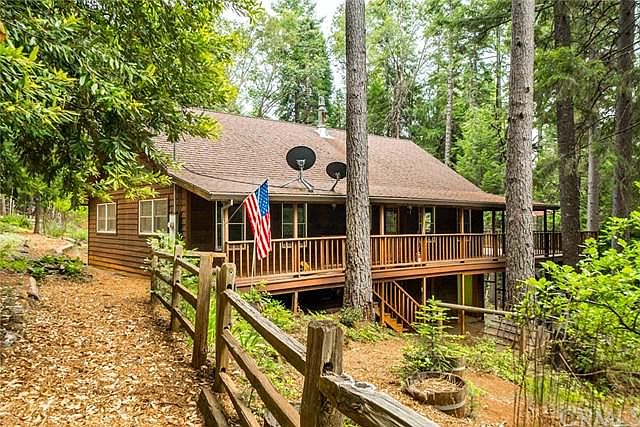 Socially distanced from the heart of Forest Ranch...just a stone's throw away from the General Store you will find this beautiful tree house-like home nestled amongst the evergreens on 1.73 acres. Walking in through the front door you enter the GREAT ROOM with vaulted ceilings and Manzanita wood trim. The kitchen has a 4-burner gas range and plenty of storage. The kitchen island makes a great place for everyone to gather. The wood stove will definitely keep you cozy in the winter months as well. One of the best features of the GREAT ROOM is the double French doors that open up to the partially covered deck...making it an indoor-outdoor room! The master bedroom is extra large and spacious with a vaulted ceiling. Both bathrooms have a clawfoot tub, wainscotting, and pedestal sink. CHECK OUT THE DECK! Definitely a great hangout spot! BONUS ROOM BELOW! 230 extra square feet below - would make a great homeschool room, small gym, or office...or a 3rd bedroom! This property also features: landscaped walkways, apple/plum/prune/Meyer lemon/peach/nectarine trees, electrical panel with a generator transfer switch, and newer on demand water heater.