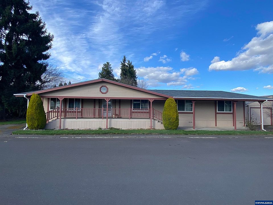 Fantastic Goldenwest with detached garage in Arrowhead 55+ park! Light and bright kitchen w/ breakfast bar and lots of cabinetry. Formal DR. Living room & family room! Spacious primary bedroom w/ensuite. Utility room w/sink. Vinyl windows throughout. Plenty of storage inside & out (shed) & shop room at end of garage. Front & back covered decks, partially fenced yard. Convenient location - easy I-5 access and close to bus line & shopping.