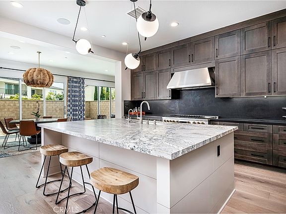 Welcome to this exquisite coastal home in the luxurious community of Parkside Estates in Huntington Beach. This modern Mediterranean-inspired community is just a stone's throw away from the Pacific Ocean, Bolsa Chica State Beach, and Meadowlark Golf Course. From the moment you step inside this opulent residence, you will be enchanted by its grandeur and beauty. Built in 2021 and upgraded top to bottom, floor-to-2nd story ceiling shiplap was added in the entry, and all transitions are encased for a seamless and polished appearance. The home has a spacious open floor plan, with an oversized kitchen, fitted with upgraded upper cabinets built to the ceiling and lower cabinets upgraded to all drawers, a large walk-in pantry and an instant hot water feature, perfect for a quick cup of tea or coffee. The kitchen opens up to the living and family rooms, bathed in natural light with upgraded sliding doors and corner stacking doors opening to the deluxe, exterior California Room. This private, indoor/outdoor oasis, complete with custom tile, an outdoor fireplace and TV, and tongue and groove, heated ceilings create this relaxing backyard with beautifully landscaping, a mature Olive tree, hardscaping, and planting beds. A guest bedroom with an en-suite bathroom, a flex room that can be used as a formal dining room, a powder room, and a laundry room also grace the first floor. The attention to detail and exquisite upgrades are evident throughout, with added insulation between the first and second stories, a water softener system, hardwood floors, designer custom light fixtures, surround-sound speakers, custom built-ins and bar room. The primary and powder rooms have custom tongue and groove ceilings, and all bedrooms have custom closets, modern crown and window frames, Hunter Douglas shades, designer tile and granite throughout. Upstairs, an open loft area is perfect for family gatherings, movies, and reading. Each of the 3 upstairs bedrooms has an en-suite bathroom with upgraded heavy-duty shower doors. The primary suite features designer built-ins, a large covered balcony, two oversized walk-in closets, and a spacious bathroom with dual sinks, a separate shower, a water closet, and a standalone tub. The garage also provides the ultimate in luxury, with a 3-car garage (two are tandem), epoxy floors, and two electric car chargers. This home truly offers the best of both worlds - luxurious living in a prime location, just moments away from the beach.
