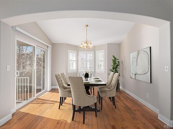 Back On The Market!! Don't miss this stunning turnkey home in the tranquil Saddle Rock Ridge neighborhood! This meticulously maintained ranch-style home features 4 bedrooms, 2 baths, and an oversized 2-car attached garage, all in impeccable condition. As you step inside, you’ll be greeted by soaring vaulted ceilings and an abundance of natural light that fills the open floor plan. The spacious living room, complete with a cozy gas fireplace, flows seamlessly into the formal dining area highlighted by a charming bay window. The heart of the home is the expansive great room and kitchen, boasting gorgeous granite countertops and modern appliances—all included! Enjoy the elegance of hardwood floors throughout, complemented by plantation shutters that provide both style and privacy. Retreat to the generously sized primary bedroom, featuring a luxurious, fully updated en-suite bathroom with a stunning quartz vanity and a glass walk-in shower. Conveniently located near the Southlands shopping mall, a variety of restaurants, movie theater, Walmart, Home Depot and much more. Quick access to E-470, DIA, and I-70, this home is also within walking distance to the highly regarded Cherry Creek School District elementary school. Don’t miss your chance to make this exceptional property your new home! Schedule a showing today and experience all that this beautiful residence has to offer!