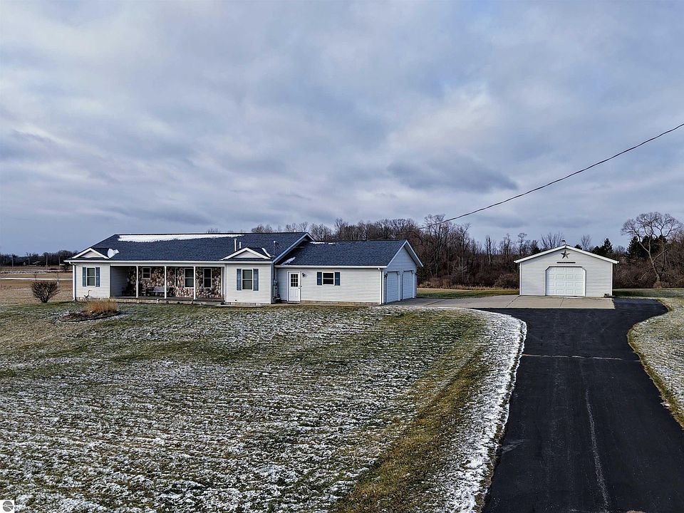 PEACEFUL COUNTRY LIVING! Plenty of room for gardening on this 3-acre parcel to grow your own veggies and flowers! Your pets will love it too! You will fall in love with the beautiful 3 bedroom, 3 bath home with attached garage plus a 2nd 20x30 detached garage both with electric, cement floors and electric door openers. There is a 16x34 covered front porch and a 12x17 rear deck where you can relax and enjoy the gorgeous views and fresh air! Freshly painted, foyer entrance, open floor plan, large living area with newer carpet, formal dining, lovely kitchen with lots of counter tops, oak cabinets, pantry and island, 11x15 laundry room, and master suite with newer carpet, spacious walk-in closet and private bath. Home is move-in ready and has been professionally cleaned and there is a newer whole house generator included in the selling price! Very nice year-round home with over 1600 square feet of living space! Less than 15 minutes from town & I-75 Exit 218 for easy commute.