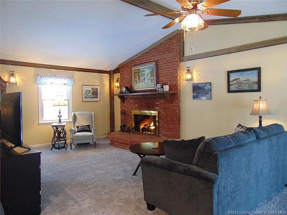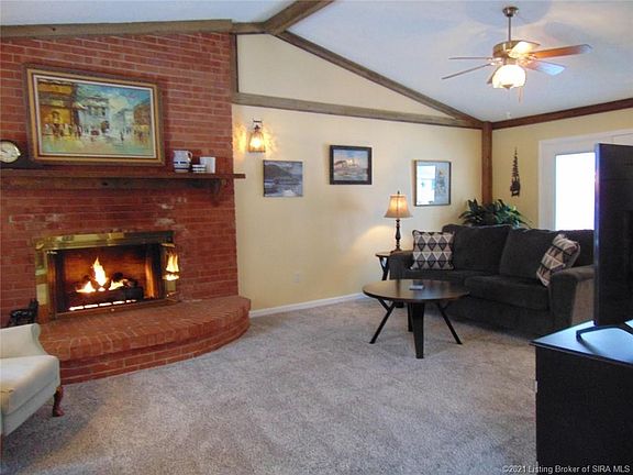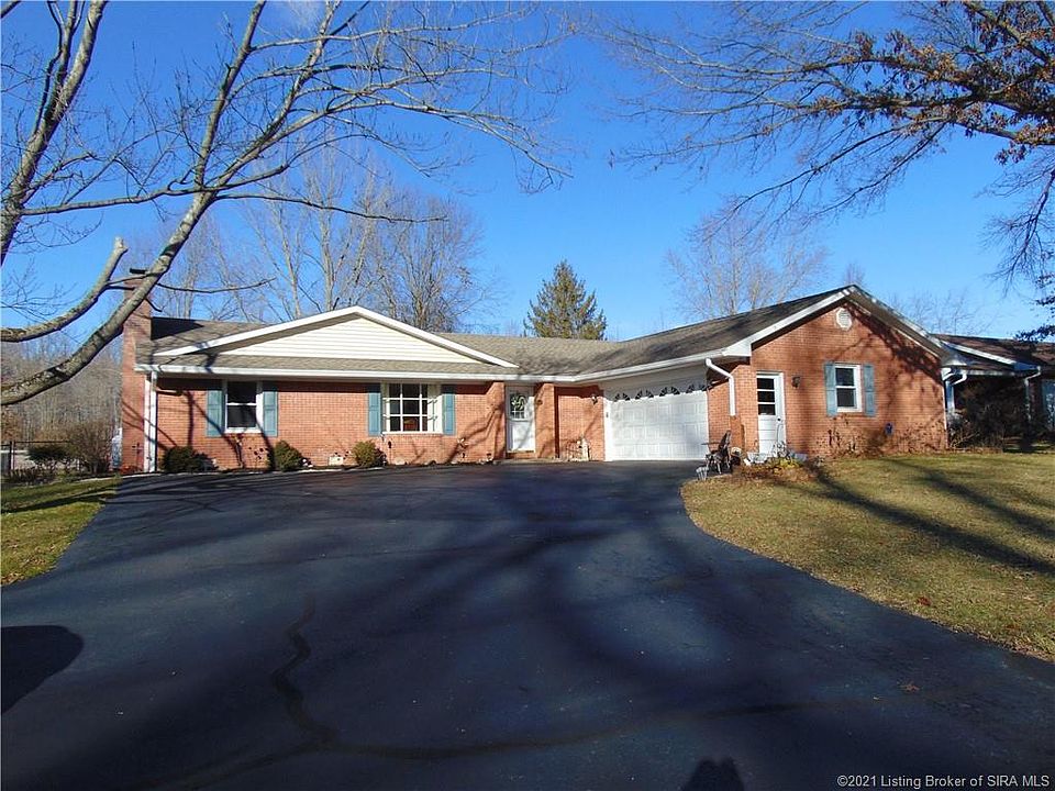 Beautifully remodeled 3 BR, 2 bath, all one level home in great location! New kitchen, including GRANITE and stainless steel appliances! Updates to bathrooms, new hardwood, new carpet, freshly painted walls! Has an extra room great for a HOME OFFICE or home schooling! Warm gas fireplace and vaulted ceiling in spacious family room! Nice size deck out back allows you to enjoy the quiet peaceful setting! Newly fenced backyard backs up to wooded area & gives feel of country! Oversized 2 car attached garage! Large yardbarn with loft for lots storage! Conveniently located between Madison, Hanover, Scottsburg MOVE IN READY!! Current Home warranty is transferable to the new owners, good through 2/4/2022. The dining room table, 6 chairs and hutch can remain.