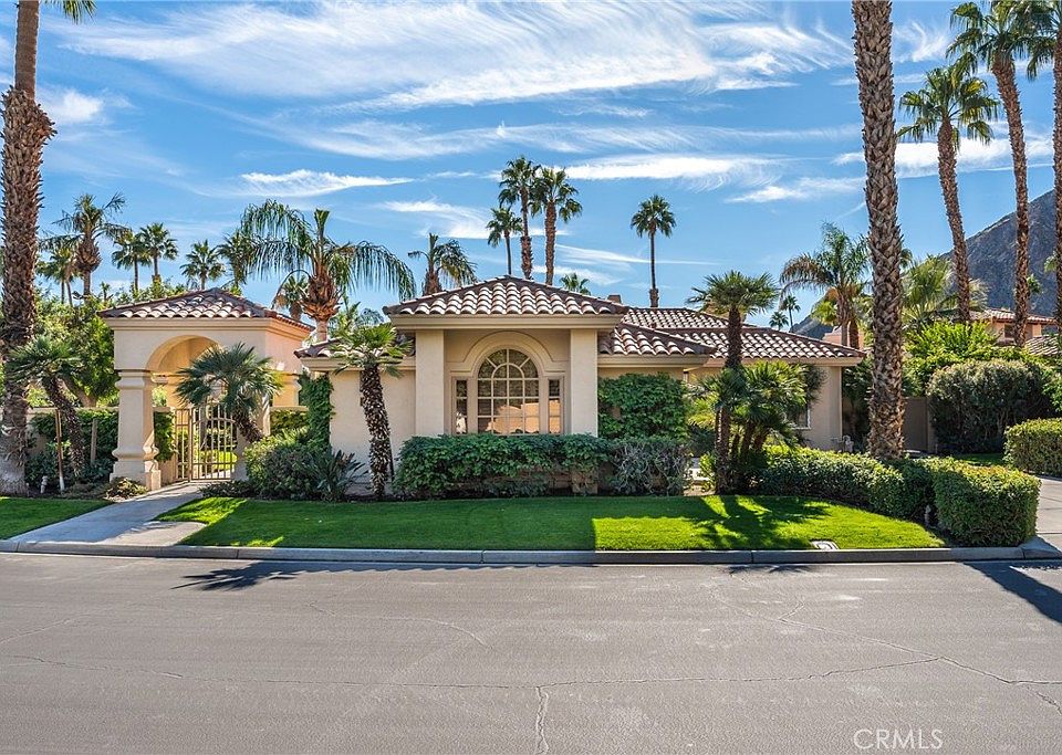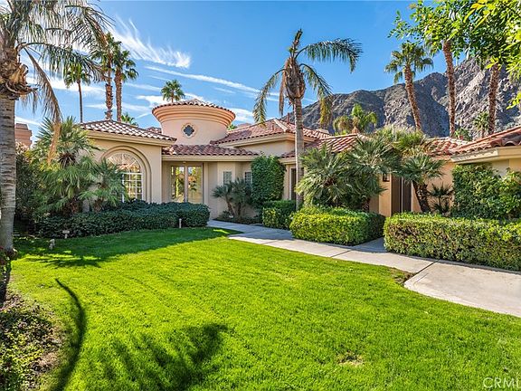 Breath taking panoramic views of double fairways, sparkling lakes, and stunning mountains! You are surrounded by the Santa Rosa Mountains on one side and the spectacular world class private golf resort on the other. Step outside to the large patio with ample space for dining & lounging, refreshing pool & spa with flowing water features.