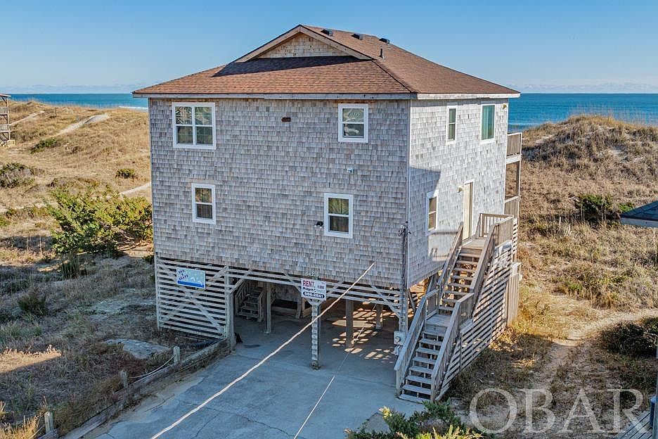 Discover 'Sea ‘N Stars,' a stunning oceanfront retreat situated in a serene cul-de-sac with a brand new fortified roof! This home offers unobstructed panoramic ocean views and easy beach access is just steps away. Enjoy sun-soaked days on the top-level deck or relax on the covered deck while staying connected to the beachgoers. The under house carport area provides room for your water sports equipment and includes a convenient enclosed outside shower, along with a fish cleaning table. Inside, find four comfortable bedrooms on the first level. The top level presents a spacious great room with abundant windows showcasing breathtaking ocean views, a well-appointed kitchen, and generous dining space. Discover the best of both worlds at this oceanfront home in Frisco, where the uncrowded beach is your backyard and the small town charm of Frisco adds to the allure.This cozy coastal town, nestled at the southern end of Hatteras Island, offers a tranquil retreat for beach lovers looking to escape the hustle and bustle of the mainland. Whether you want to relax on the unspoiled beaches, dine at local restaurants, or simply unwind on the breezy deck with panoramic ocean views, this home lets you enjoy it all. Over 55K in rental income in 2023 and already over 55K on the books for 2024!
