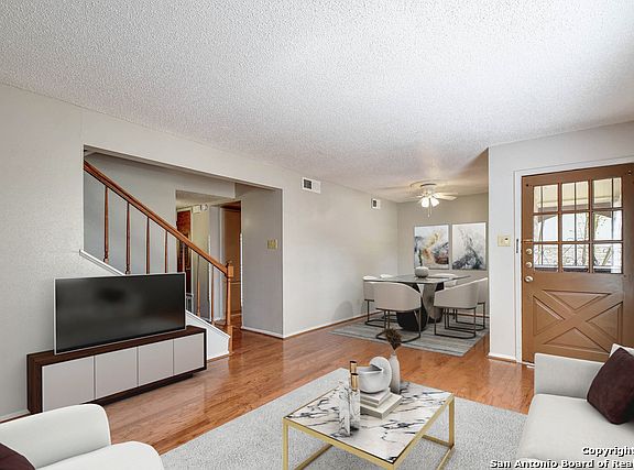 Spacious 3-Bed/2.5-Bath Townhome w/Quartz Kitchen & Private Patio - Inside Loop 410 via Callaghan Rd near the Medical Center! Nestled in gated Rolling Ridge village, this two-story townhome features a flexible room/office space - ideal for a home office, and no carpet - easy-to-maintain wood & laminate flooring throughout. The open-concept kitchen boasts quartz countertops, breakfast bar and generous storage. Just steps from your large private patio, enjoy access to the community pool & clubhouse. Two assigned parking spaces plus guest parking. Convenient to shopping, restaurants and the Loop 410 corridor. Available now - schedule your tour today! Callaghan Rd townhome at this size & quality doesn't come up often - don't miss out!