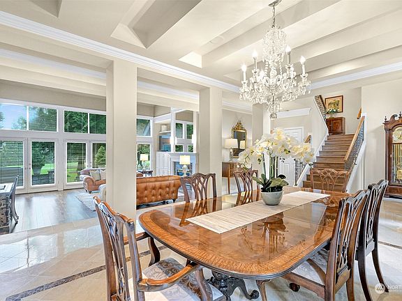 This Semiahmoo custom masterpiece is a testimony to extraordinary craftsmanship, set against the backdrop of the First Green, an Arnold Palmer designed golf course. Nestled within one of the NW's most coveted communities, this property offers a truly unparalleled living experience. The home's gourmet kitchen, adorned with exquisite limestone flooring and countertops, sets the stage for culinary indulgence. With cathedral ceilings, expansive window walls, and extensive hardwood floors, the residence showcases dramatic NW architecture, creating a captivating ambiance. Boasting two spacious and sumptuous primary suites, a generous bonus room over the triple car garage and three inviting fireplaces, this home is a testament to luxurious living.