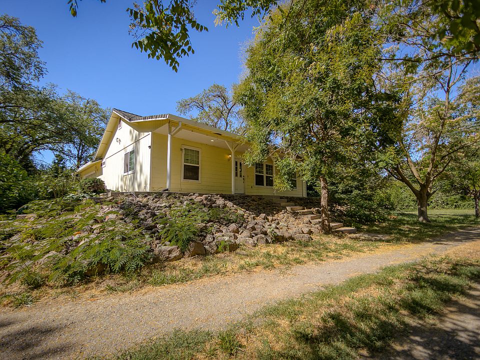 Private and secluded, fenced and gated, 3.5 acres with Anderson Creek frontage an Asian pear orchard, out buildings and a barn. Home is set up high on an engineered foundation out of the flood zone. Relax on your patio or porch, taking in the abundant wildlife! Country living, close to town, including a well and a seepage well. 1176 sf, 3/2 home with an open concept floor plan utilizes the space well. With a cute and cozy gas fireplace, vaulted ceilings and a 2-car garage