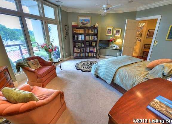 This gorgeous second floor unit has an open floor plan with exquisite river views! The unit features 3 bedrooms (one currently used as an office) and 2 ?? baths. The master bedroom offers a terrace overlooking the adjacent marina and plenty of closet space. The master bath has been updated with beautiful touches of travertine and marble, featuring a walk-in shower, Jacuzzi tub, and double bowl vanity. The gourmet kitchen has been updated with granite countertops, sub-Zero refrigeration, double ovens, gas cooktop and dishwasher. The Brazilian cherry floors, detailed moldings, and custom cabinetry all add to the overall quality and appeal of this stunning unit. You will love the natural light from the expansive triple pane windows and doors. The large living room with gas fireplace and dining area are completely open to the kitchen, built-in bar and cozy family room. Watch gorgeous sunsets from the large terrace overlooking the Ohio River. The unit itself has extensive built-in cabinetry for extra storage. There are also 4 additional storage locations (2 in the lower level garage and 2 in a climate-controlled storage area). The secured building has its own elevator that is shared with only 4 units in the building. There are 2 reserved parking spaces in the lower level garage, as well as one assigned covered parking space. Harbortown condominium amenities include a riverside heated swimming pool, sauna, party room and well-equipped fitness room. The owner also has a slip in the adjacent marina that he will sell separately.