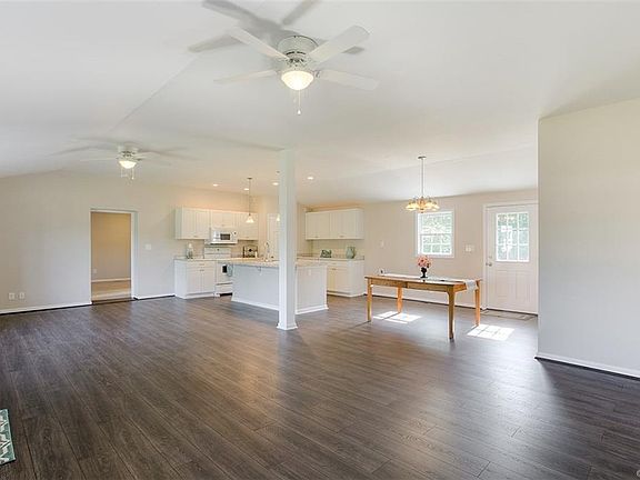 Completely renovated rancher on 1.5 acres in quiet area! This house shows like new! It features an open concept family/kitchen/dining space with laminate flooring & vaulted ceilings. The kitchen has an island with an overhang bar, pantry closet & above cabinet lighting. The master suite includes a 14x14 bedroom, 5x8 walk-in closet, and lovely bathroom with double vanity sink, ceramic floor, and tub/shower. Two other bedrooms, an office with a closet, laundry room, and full bath are on the other end of the house. The hall bath has a double vanity sink, ceramic floor, linen closet, and tub/shower. Outdoors boasts a large 2 car detached garage (26x28), 10x7 rear porch, private back yard that backs up to a state park, and paved driveway! The home & garage have a new roof. Some other new features are - conditioned & insulated crawl space, new insulation throughout, new HVAC system, new electrical throughout, new plumbing, and prewired for cable & vinyl windows. Comcast is available at this location!