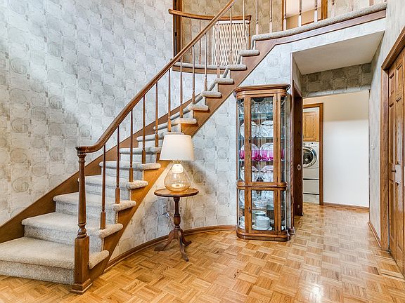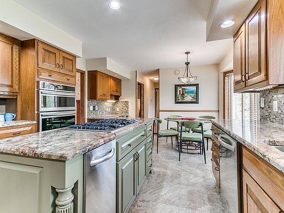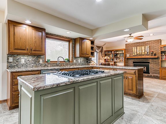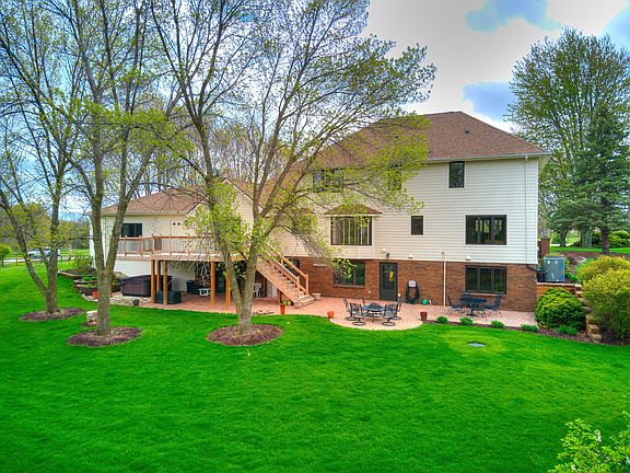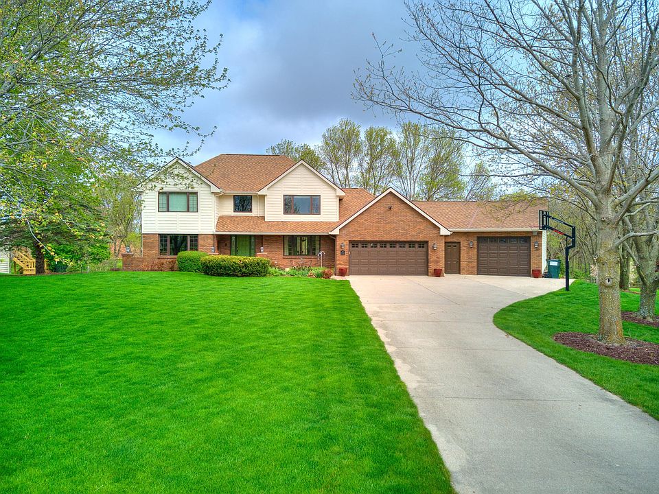 Check out this dream 5-car garage where the opportunities are limitless! The expansive 5-car garage, insulated & heated, offers approximately 1,755 sq ft of space, complete with a sink, overhead storage & a dedicated panel. This home sits within Hickory Hills rural neighborhood, on just under an acre of tree-filled land, tucked away on a cul-de-sac on the edge of North Ames, within the award-winning Gilbert School District. Offering an impressive list of amenities, this residence features 4 bathrooms and 4 generously sized bedrooms, with an additional 5th bedroom that does not have a closet, although it does have an egress window. With approximately 4,500 tastefully finished sq ft, the home greets guests with a grand foyer, adorned with an elegant, open curved staircase. Step into the updated kitchen, a culinary haven equipped with a large island, sleek stainless steel appliances, granite countertops & custom cabinets. Delight in the modern touches, including updated LVT flooring, slate backsplash, a convenient built-in desk, & a trash compactor. The kitchen also features a bay window, wine cabinet, double ovens, & on-demand hot water at the sink. The kitchen includes all appliances, including a new fridge, oven, JennAir gas range & convection microwave in '23. Retreat to the primary suite with ample space for relaxation. Pamper yourself in the luxurious Bain air tub or step into the beautifully tiled shower. The primary suite also features an expansive walk-in closet & elegant bamboo flooring, while the en-suite bathroom features granite countertops. The home has numerous updates, including newer windows on the main & upper levels, & a new septic system slated for installation in '24. Enjoy outdoor living on the updated 993 sq ft cedar deck, or unwind in the hot tub, included with the property. The landscaped yard features charming paver patios in both the front & back, creating inviting spaces for outdoor gatherings. Additional features include main-level laundry, two fireplaces (one gas, one wood), a radon system, & solid core 6-panel doors. The home is equipped with hand-blown glass light fixtures, outlets in the eaves for Christmas lights with a dedicated circuit & timer, & a walk-out lower level with a convenient kitchenette. Further enhancing the property are a backyard fountain, Ring doorbell & camera included. A new roof was installed around '18, complete with Leaf Filter gutter guards '23 & updated gutters/downspouts.