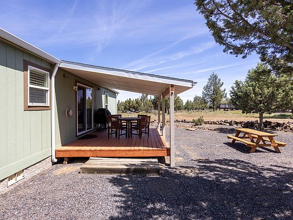 Lot's of pride in ownership this neat and tidy 2.65 acre property offers three bedroom two bath1404 square foot manufactured home. Move-in ready for full-time living or use as a second home. Sit in the living room and enjoy Beautiful Cascade Mountain Views. Entertain on the covered back deck. Circular driveway for family and guest trailer parking. Furnishing can be included in the sale. Property features a 2500 gallon cistern, all solar systems in owned. Come in enjoy all the amenities that 3 Rivers as to offer. Dirt bike and ATV trails, private beach on the Metolius River. Gun Range, community center. Pickleball court. Private Air Strip.
