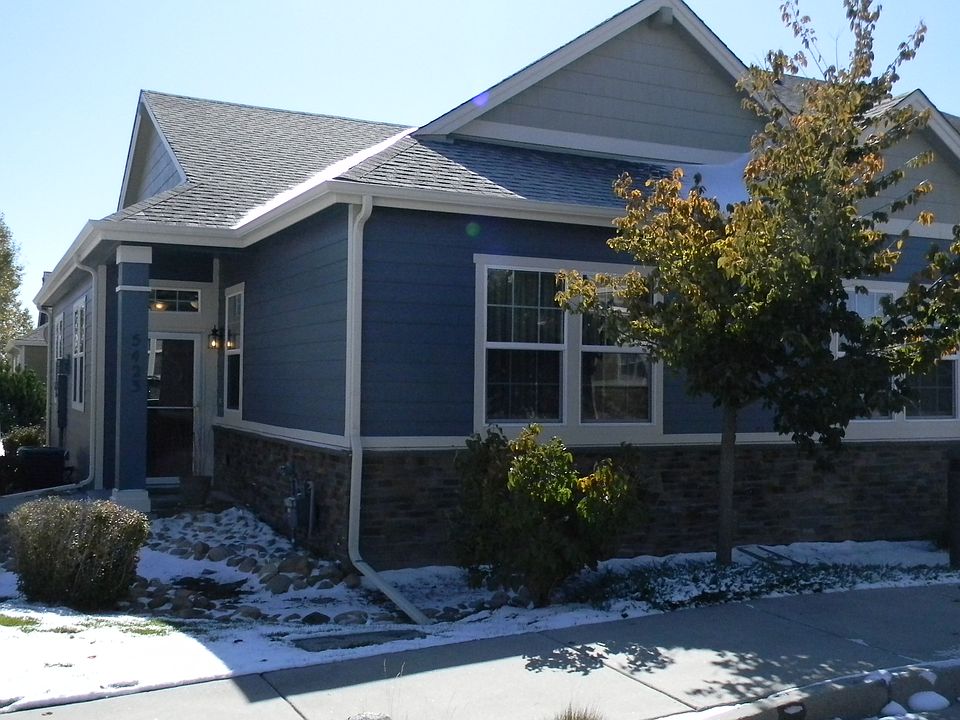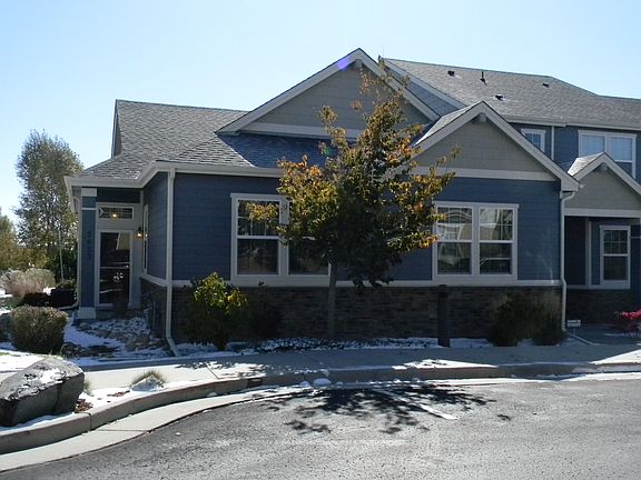 Covered hardwood entry opens to great room boasting 10' ceilings, new laminate floors and lots of natural light, 3-sided gas FP, informal Dining area, 2 ceiling fans. Separate formal Dining/Office space w French doors. Open Kitchen w granite counters, breakfast bar, tile backsplash, pantry, 42" cabinets, stainless steel appliances, hardwood floor. Main level Master Suite w ceiling fan, adj 5-pc Bath, spacious walk-in closet. Additional main level Bedroom w ceiling fan. Other bonus features; main level laundry, energy efficient vinyl windows, central A/C, finished 2 car Garage w alley entry. Washer & dryer included, plus gun/storage safe. Maintenance free, private corner lot w mountain views. Plenty of close guest parking. Walking distance to park, rec center, minutes from schools, shopping, entertainment & main roads.