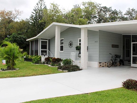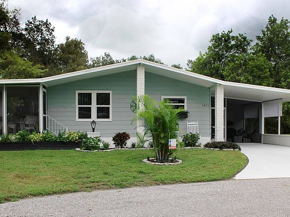 One family owned 2-bedroom 2-bath manufactured home located in one of the most desired locations in Sarasota. This home speaks "Florida"! With 2 screen enclosed outdoor seating and entertaining areas and an additional patio for lots of BBQ's and gatherings. Situated on a cul-de-sac with additional side and backyard space. This home is a must see and by appointment only. Available for sale now with available occupancy Feb. 1, 2022. This home has been loved and well maintained by one family as owners. Being offered fully furnished* (*not exact of all furniture in photos), just pack your toothbrush! House has updated kitchen appliances, a/c, water heater, roof, new double paned windows throughout the home, newly screened carport entertainment area. New set of film windows for the lanai. Grayish Drift Wood colored laminate flooring throughout the home along with lots of personal touches to make this house a home. A 55+ Pet friendly community with a monthly lot rent which includes your water, sewer, ad valorem and non-ad valorem taxes (real estate taxes that cover your police and fire departments, streets, street lights etc.) curbside trash collection, both recycle and disposal, lawn maintenance and irrigation and yard waste. And ALL the amenities of the community for your resort lifestyle of living. A newly renovated club house, 2 pools, 2 hot tubs, sauna shower, tennis courts, full gym with all new exercise equipment, ping pong, pickle ball, bocce ball, billiards, and the list goes on. Each month the community holds events such as potluck dinners, bingo, dances, exercise classes, card games, shuffleboard and bocce ball tournaments, socials, planned trips and activities, and much more. All fun and exciting ways to meet and make new friends! A vacation 365 days a year! And you could be living it! You'll never get tired of saying "It's just another day in paradise"! Community situated on 120 lush landscaped acres this private enclave is meticulously maintained and surrounding an interior lake, which is the central focal point in the community. Whether you're an active or quietly retired there's something for everyone! Centrally located to popular attractions, John and Mable Ringling Museum of Art and their mansion home, The Mary Selby Botanical Gardens, Van Wezel Performing Arts Hall, Asolo Repertory Theater. Sarasota's very own Nathan Benderson Park, less than 10 miles away has become one of North America's premier rowing facilities. In April 2016 the park hosted the U.S. Olympic Team Rowing Trials, bringing Olympic hopefuls from all over the country to Sarasota. Siesta Key Beach which is only 7 miles away was voted the #1 beach by Trip Advisor in 2017. Just one of the many beaches that are just miles away along with Downtown Sarasota with its fine dining, cultural centers, shopping, boutiques and art district. You will never be bored! Disclaimer "All listing information is deemed reliable but not guaranteed and should be independently verified through personal inspection by appropriate professionals. We cannot guarantee or warrant the accuracy of this information or condition of this property. The buyer assumes full responsibility for obtaining all current rates of lot rent, fees, and pass-on costs. Additionally, the buyer is responsible for obtaining all rules, regulations, pet policies, etc., associated with the community, park, or home from the community/park manager. We are not responsible for quoting of said fees or policies."