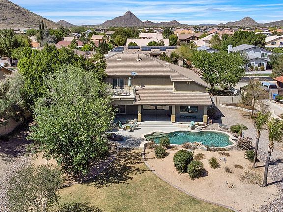 BACK ON MARKET, PRICE REDUCED. Don't miss chance to own rural property in suburbs. Semi-custom home on almost an acre nestled among multi-million dollar homes with million dollar views & privacy. NO HOA & RV vehicle parking with access thru front & back of property. Refreshing pool w water feature, mature landscaping w irrigation system front & back, oversized extended patio, 2nd flr balcony w exterior spiral staircase, all make this your own personal oasis built for entertaining & privacy. Primary bdrm & guest bdrm down, 3 oversized bdrms, Loft, AND XL game room up. Dine in kitchen has extra large island open to family rm w gas fireplace. Formal lvg/dng offers more space for large gatherings.